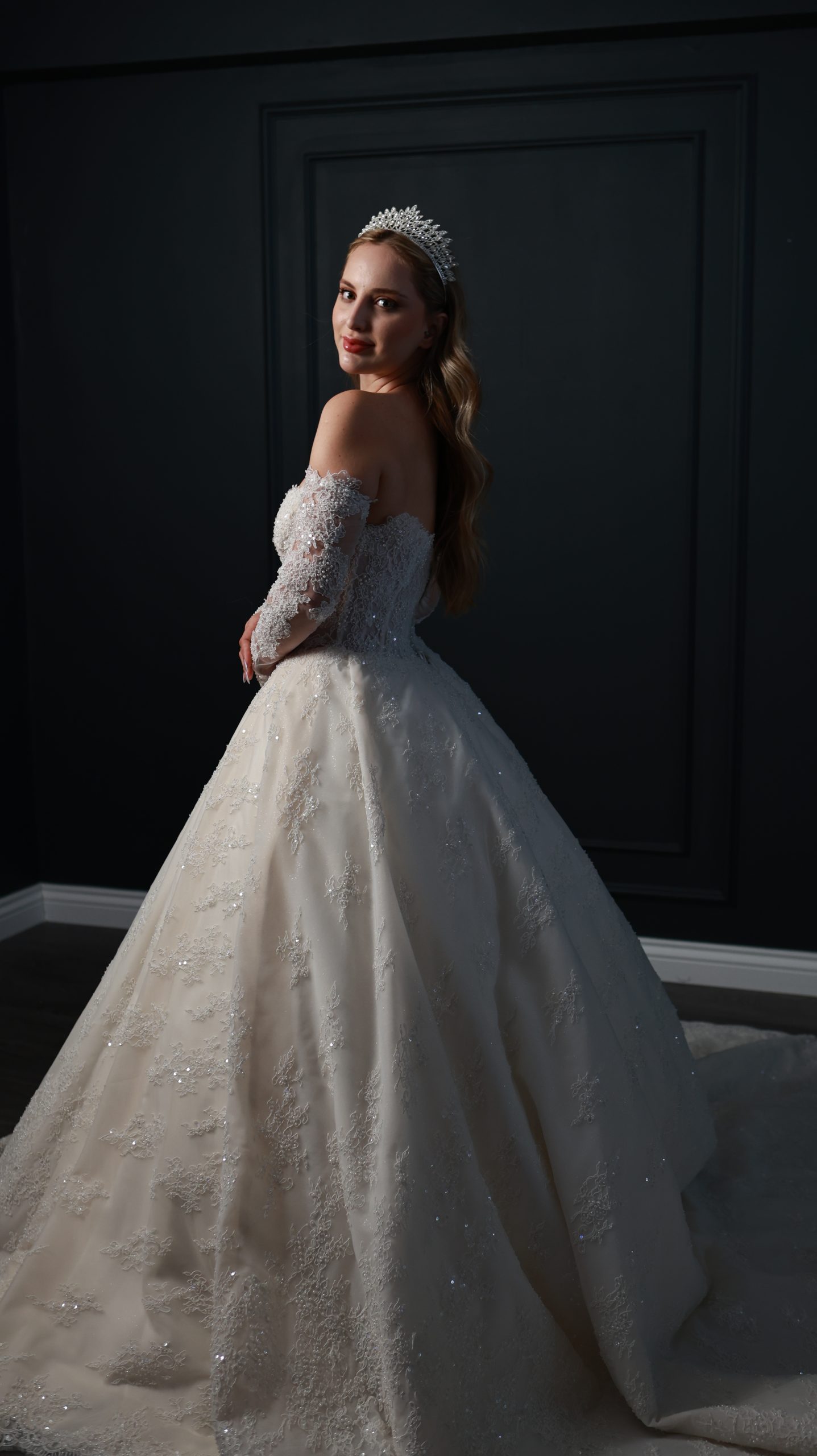 Bu gelinlik, tamamen sizin ölçülerinize özel olarak dikilmektedir. En mutlu gününüzde kendinizi özel hissetmeniz için tasarlandı.