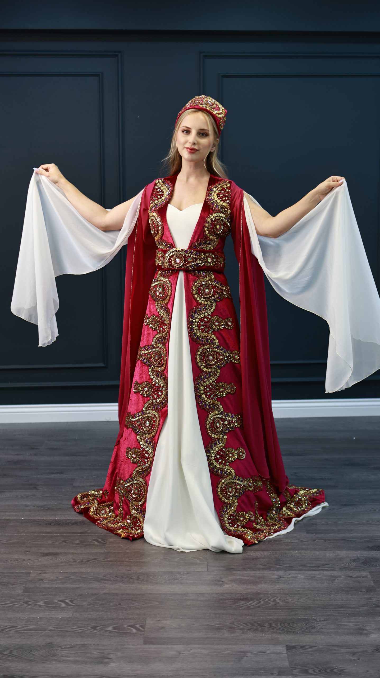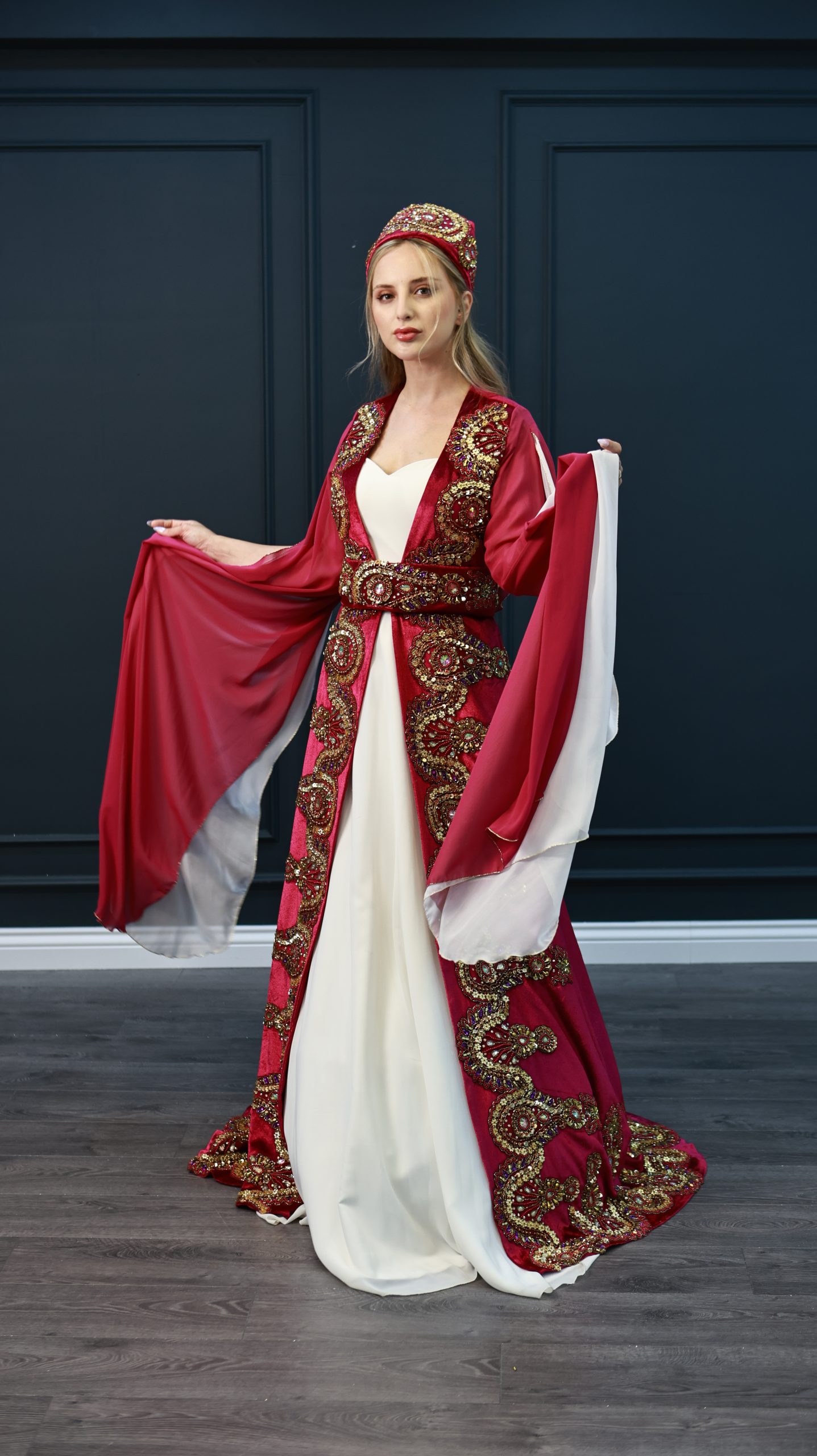 Bu kaftan, tamamen sizin ölçülerinize özel olarak dikilmektedir. En mutlu gününüzde kendinizi özel hissetmeniz için tasarlandı.